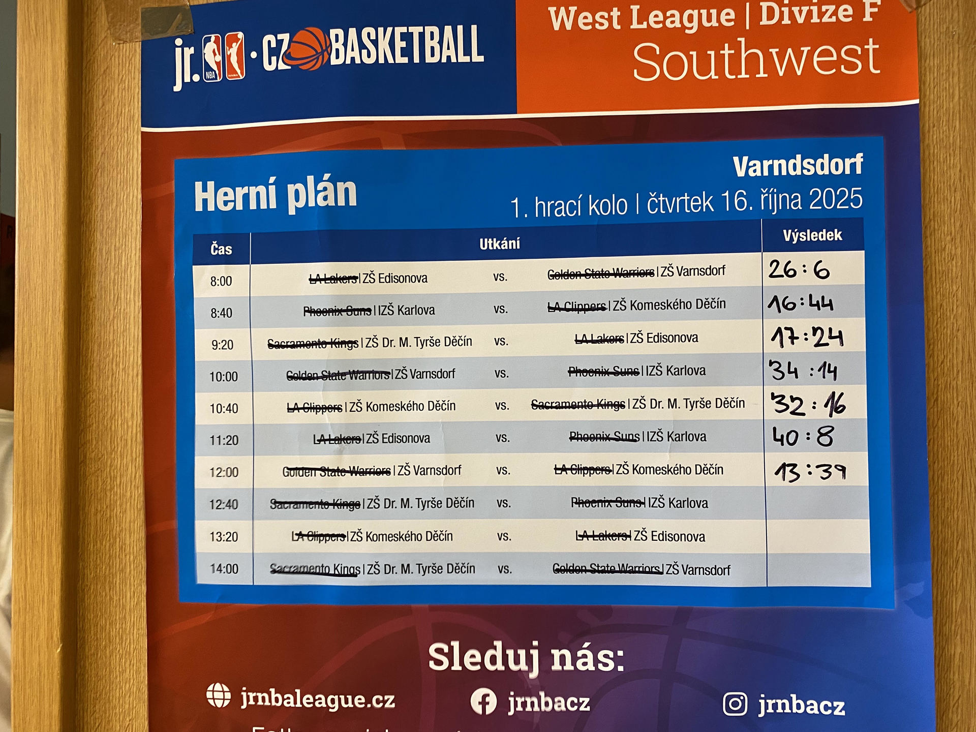 Ve čtvrtek 16. října 2025 se náš školní tým ze ZŠ Komenského, Děčín zúčastnil prvního hracího kola prestižní soutěže Junior NBA ve Varnsdorfu. Celý turnaj se nesl ve znamení napínavých zápasů, skvělé atmosféry a obrovského nasazení všech hráčů.