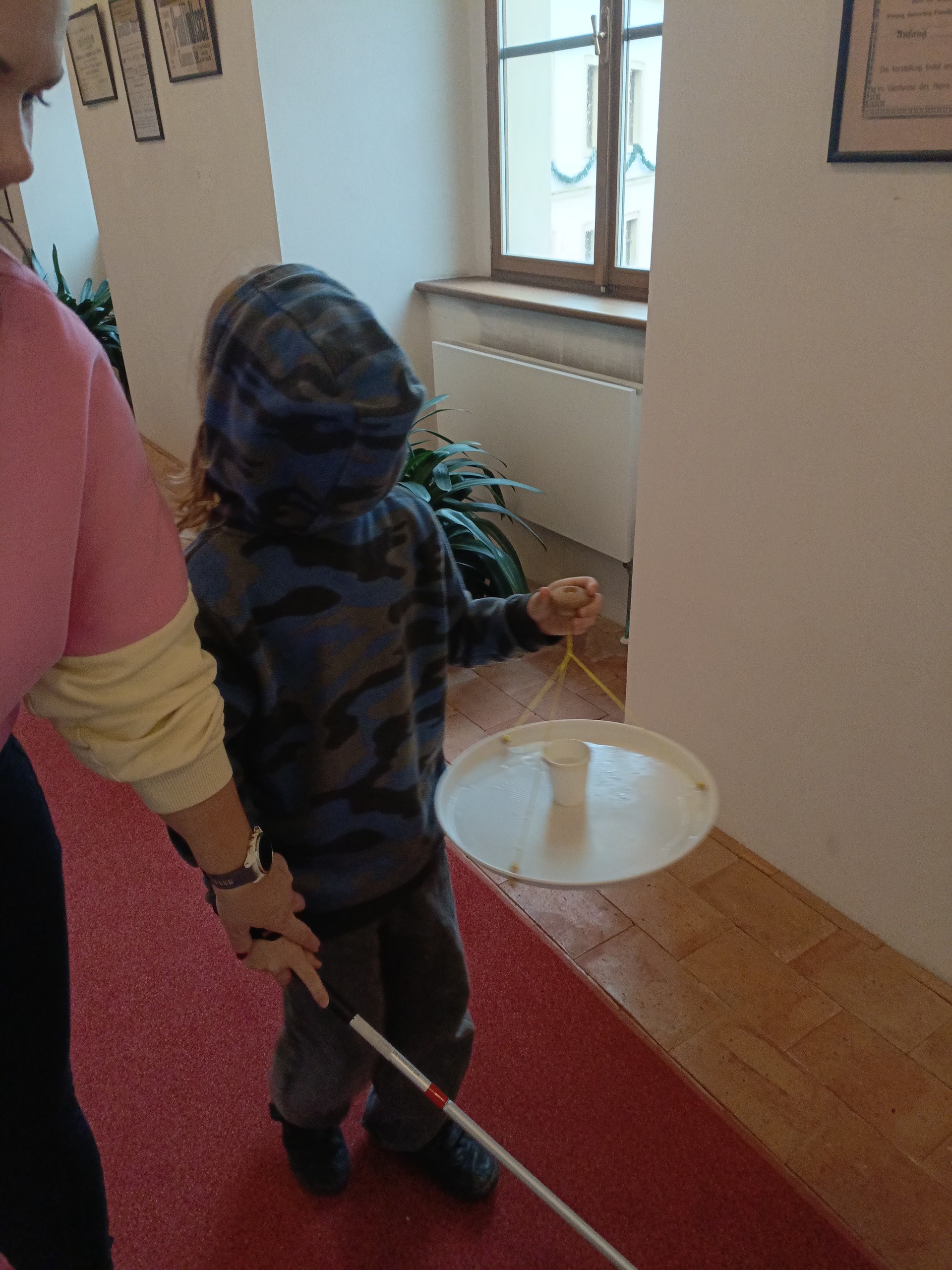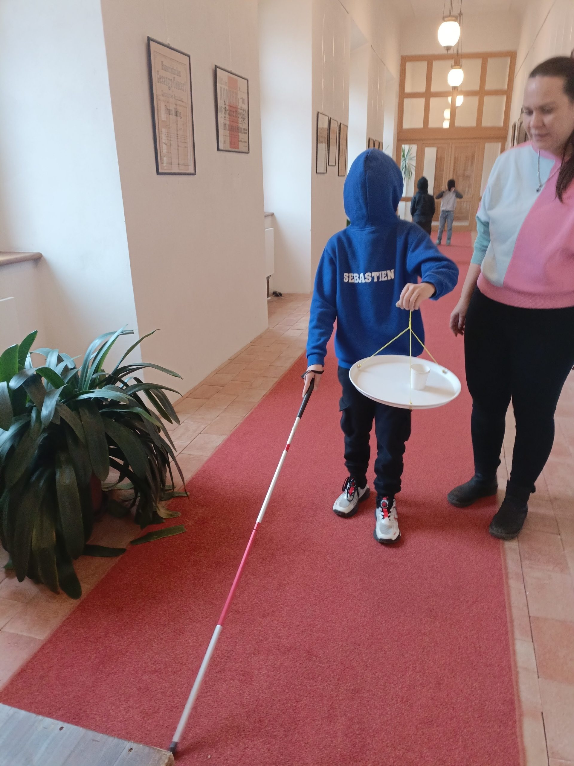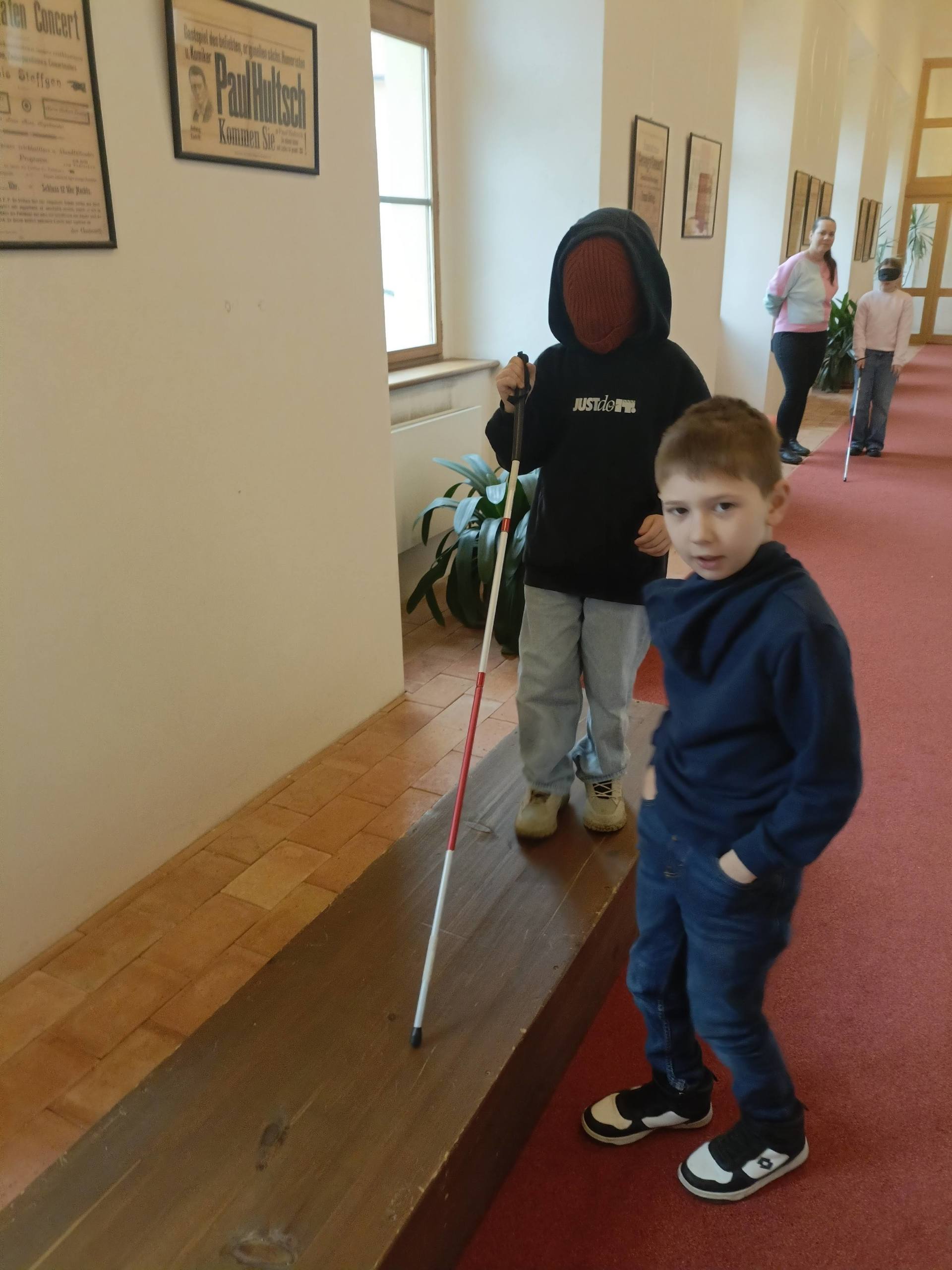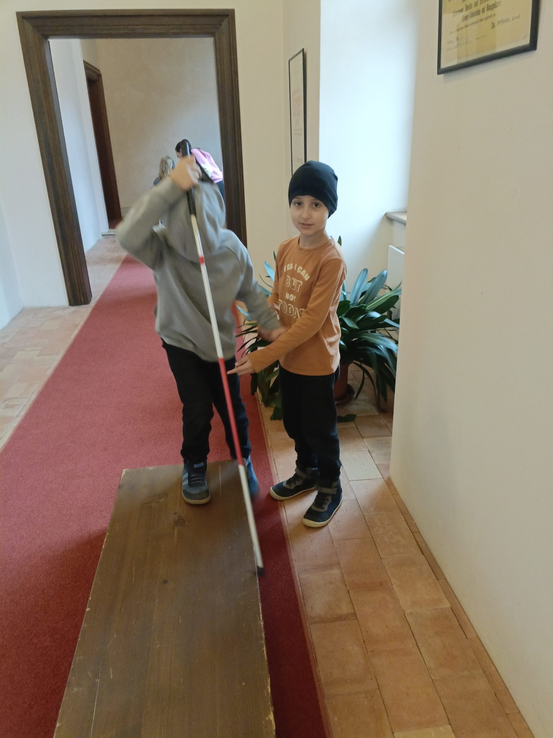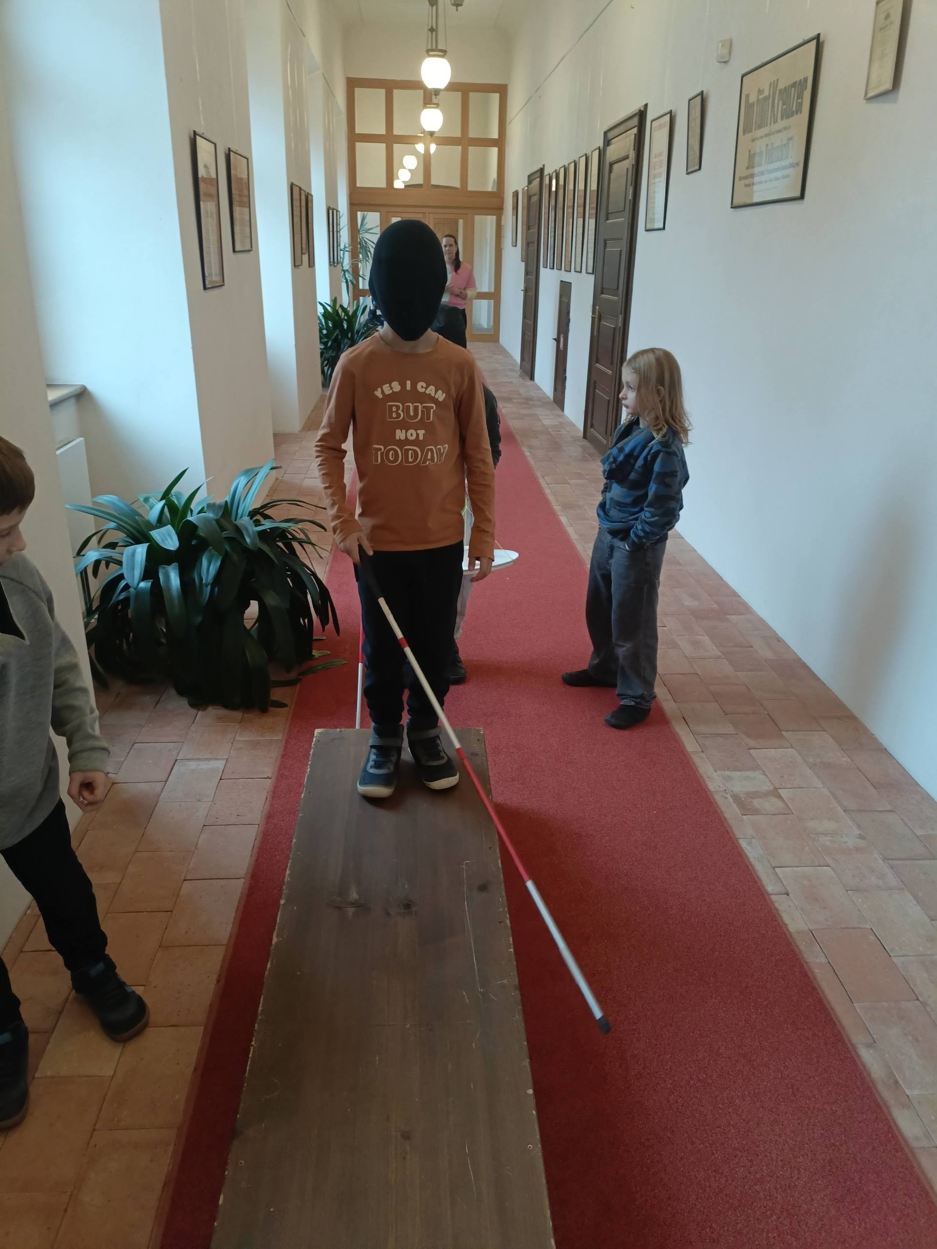 Děti si mohly osahat různé předměty z různých materiálů a poznávat jejich vlastnosti jinak než zrakem. Velkým zážitkem byla část programu, kdy si všichni vyzkoušeli chůzi se slepeckou holí a zjistili, jak důležité je soustředit se na ostatní smysly a spoléhat na pomoc kamaráda.