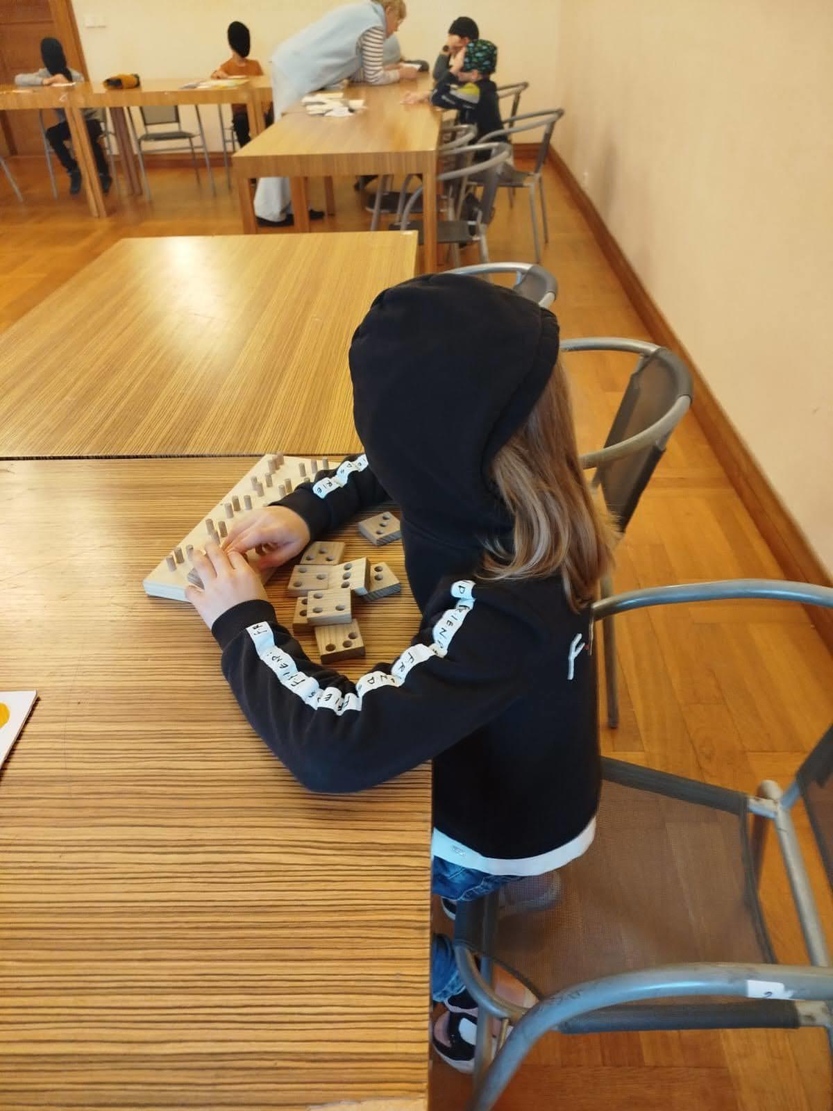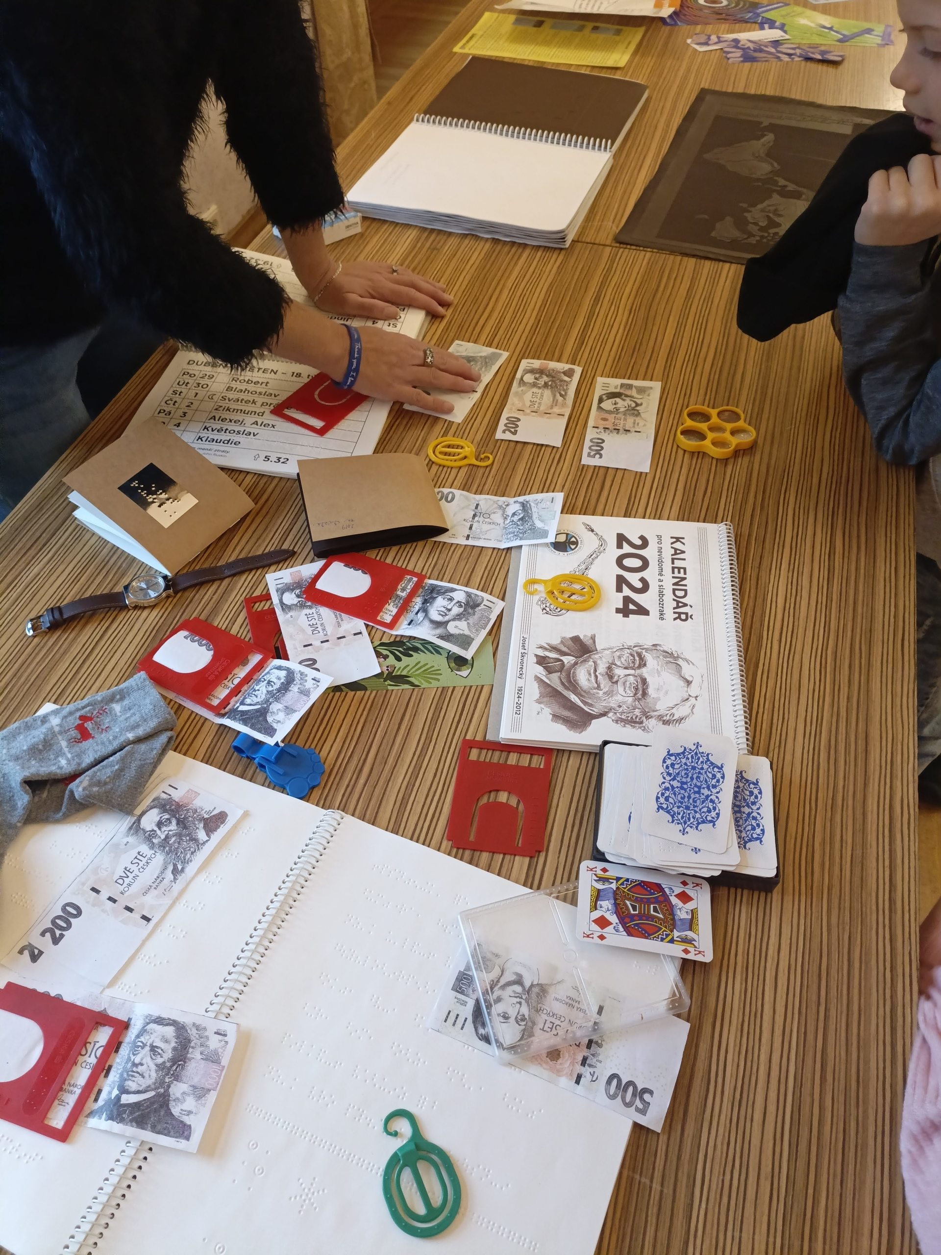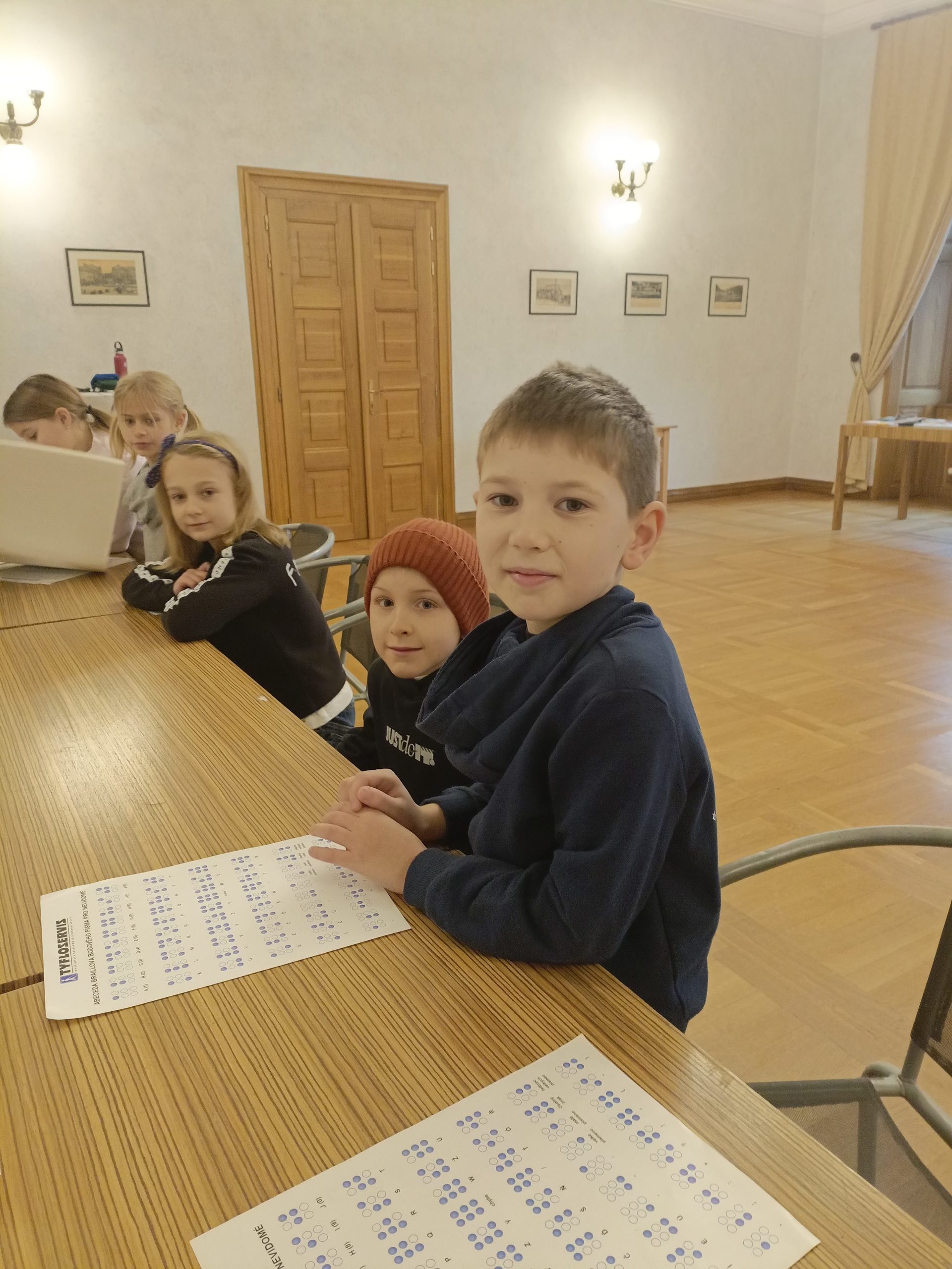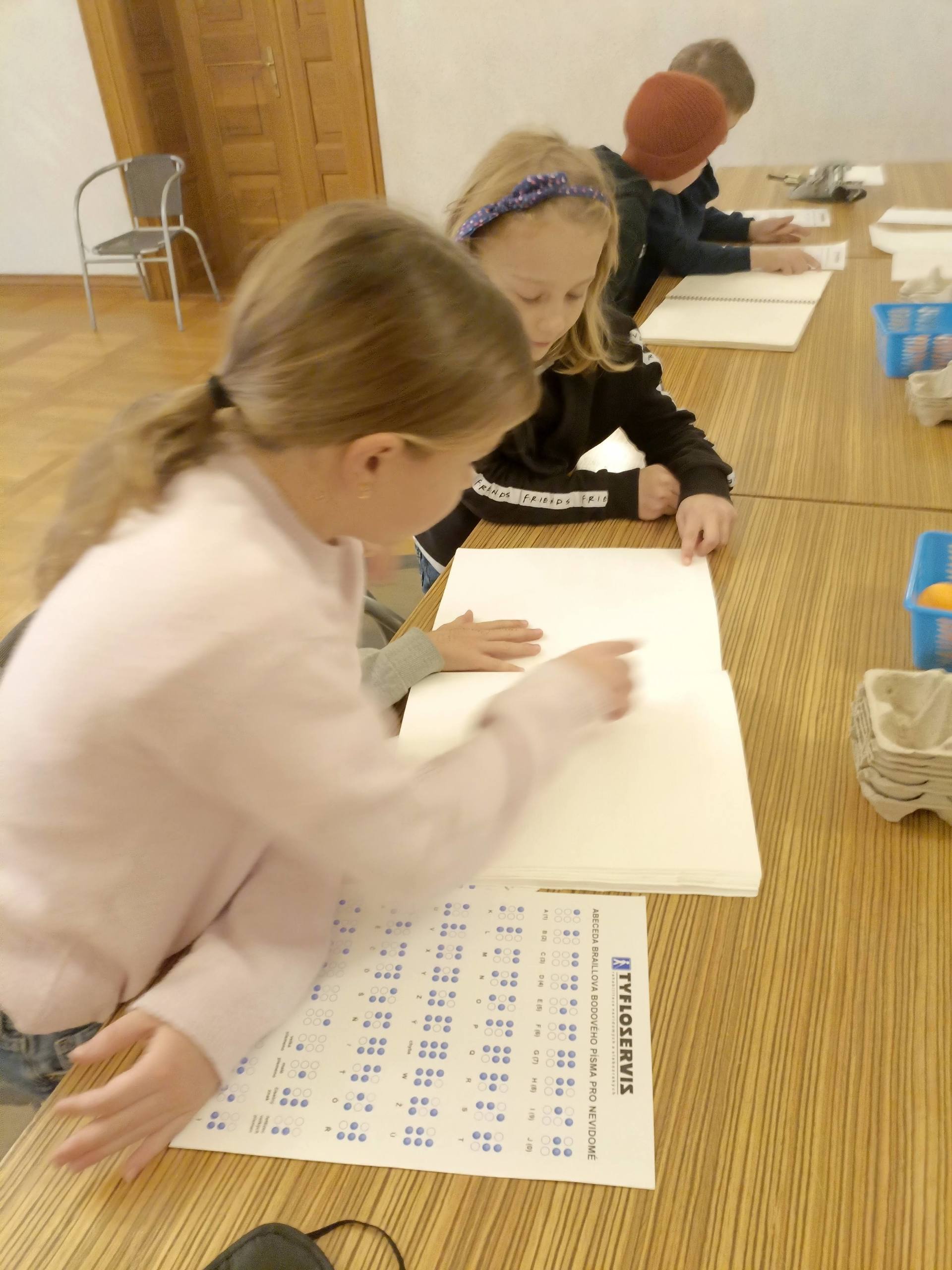 Další zajímavou aktivitou bylo poznávání Braillova písma – děti se dozvěděly, jak funguje písmo pro nevidomé, a mohly si vyzkoušet číst a psát pomocí speciálních reliéfních znaků.